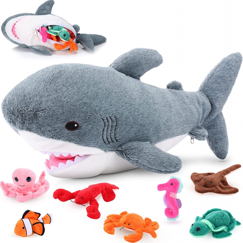 Materiales fiables: estos tiburones de peluche y serie están hechos de algodón y tela de calidad, suave y cómodo al tacto, fiable y apto para fregaderos, lo que te da una buena experiencia de uso y te sirve durante mucho tiempo